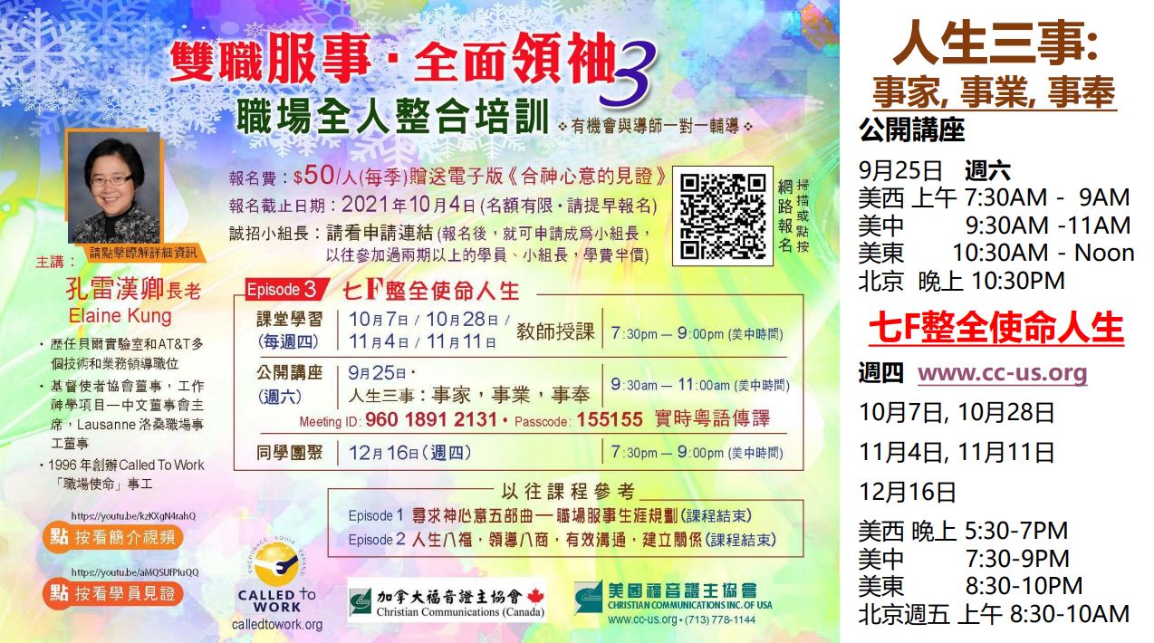 北美華神 課程: “當信仰遇上工作—從聖經看職場事奉“